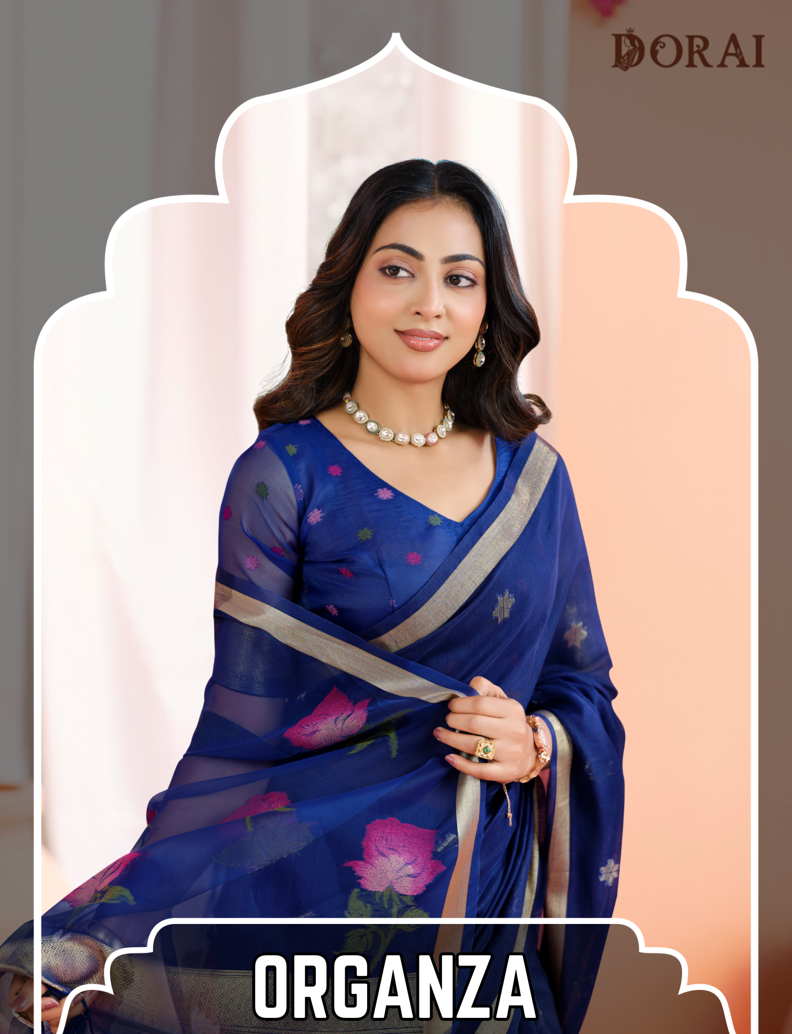 Navy Blue Zari Jamdani Saree | Handloom Jute Linen-Cotton Weave