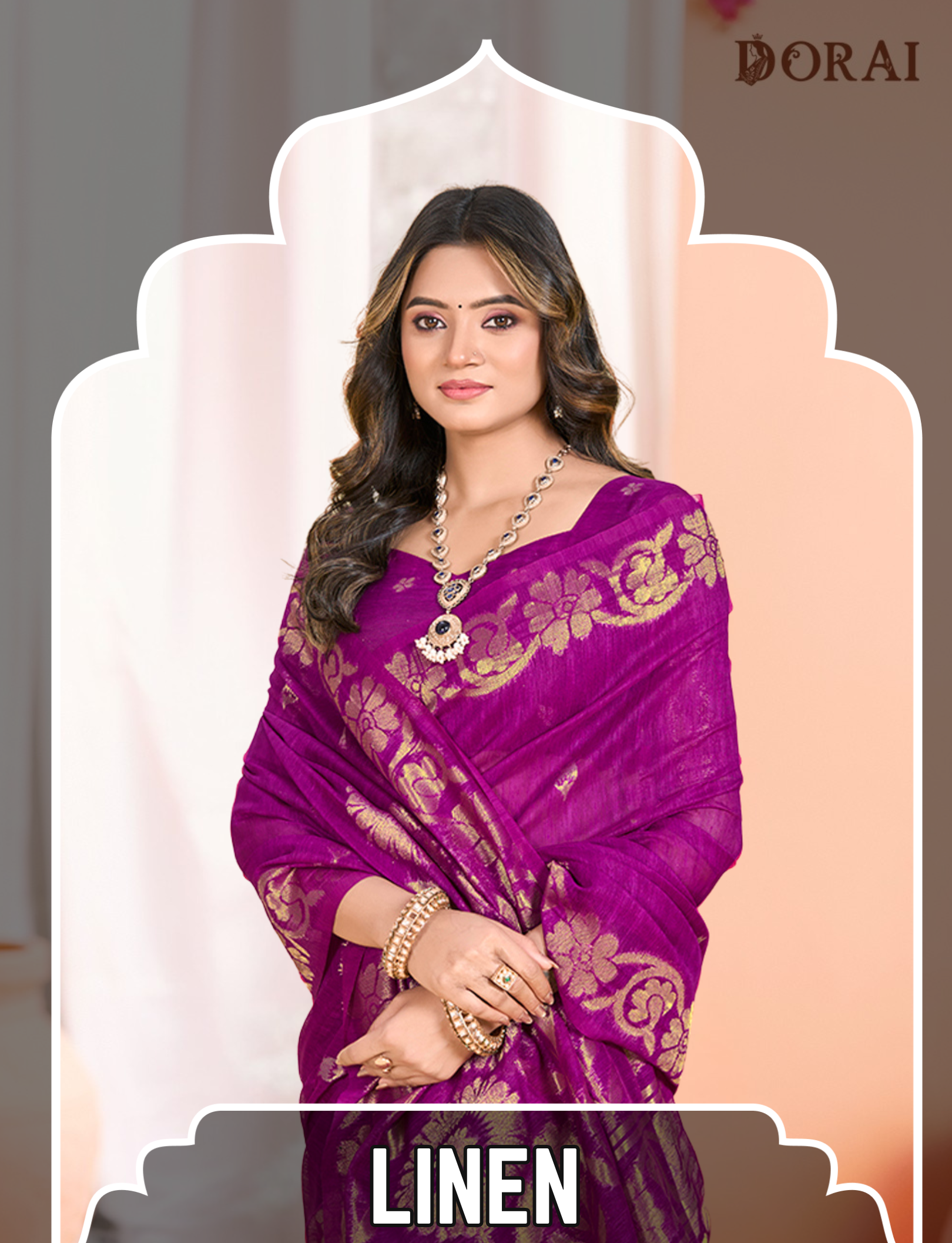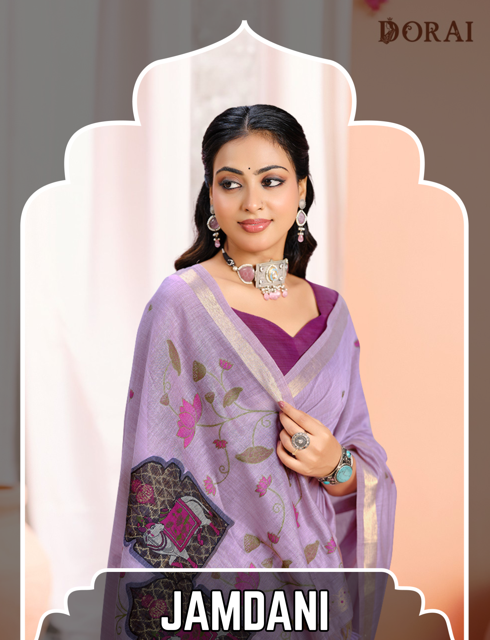 Solid Pink Zari Jamdani Saree | Handloom Jute Linen-Cotton Weave