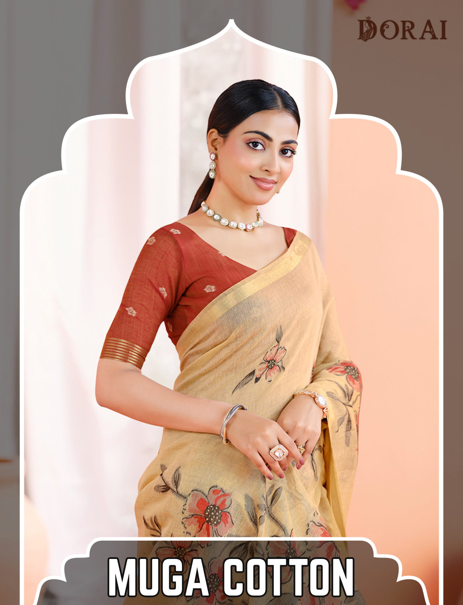 Sandy Beige and Multicolored Muga Cotton Unstitched Suit Set