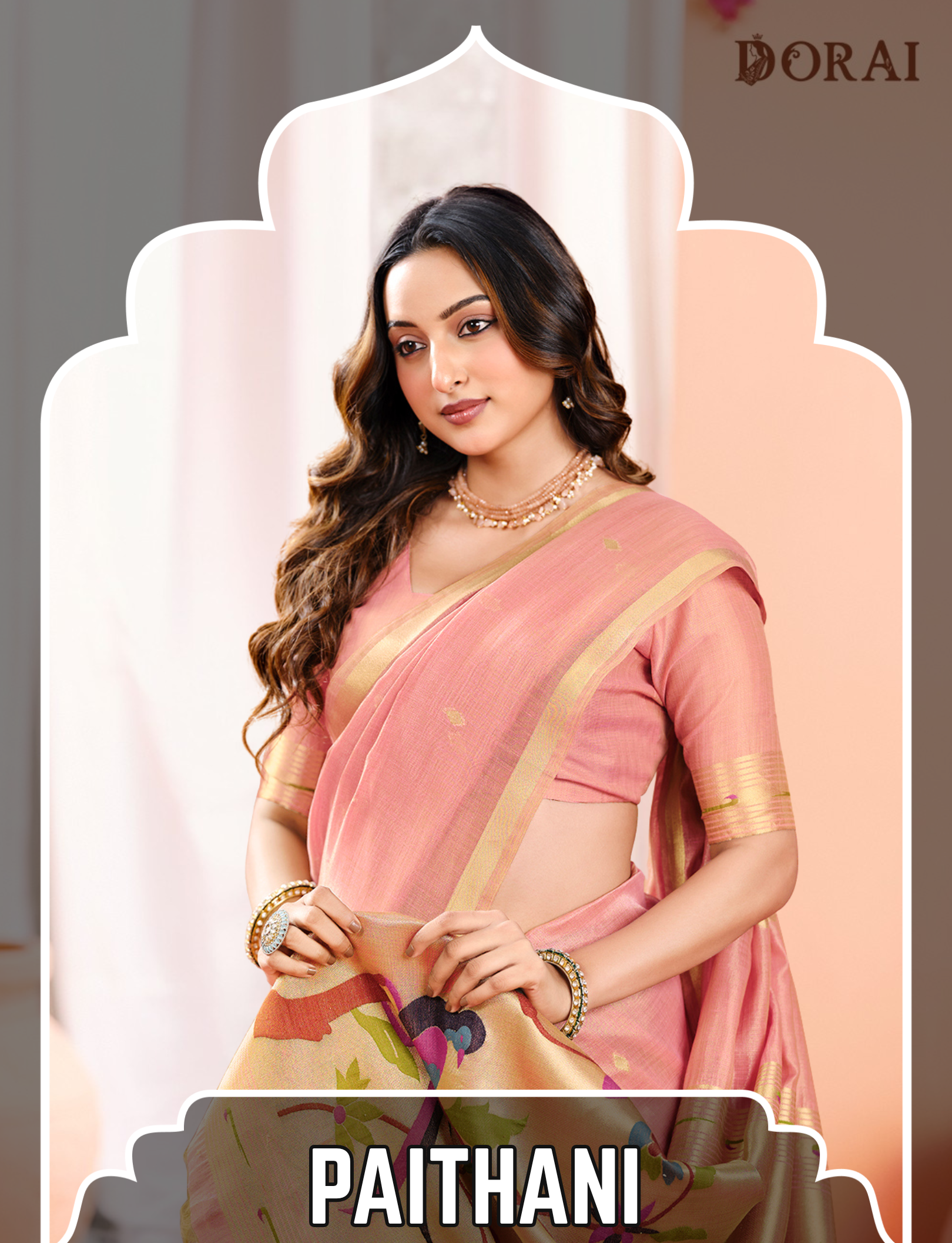 Pale Golden Beige Linen-Cotton Jamdani Saree | Paithani Inspired Artistic Woven Pallu