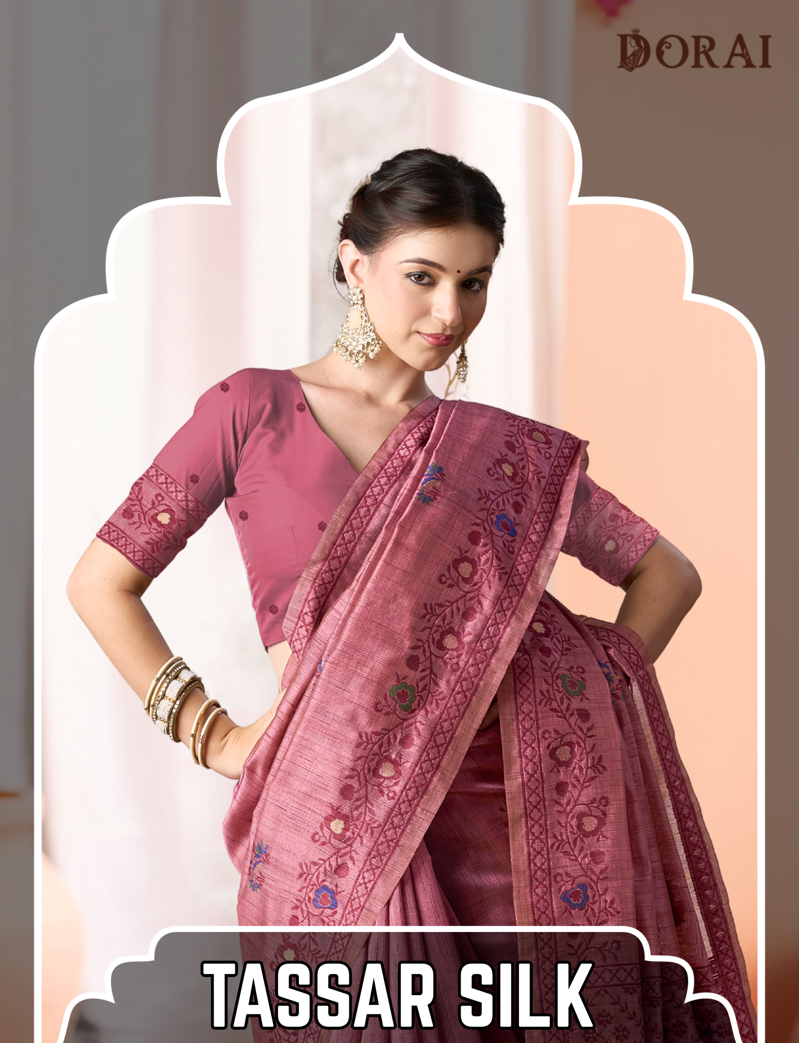 Rose Pink Handloom Silk Saree with Tree of Life Weave Pallu | Paithani Inspired Woven Motifs