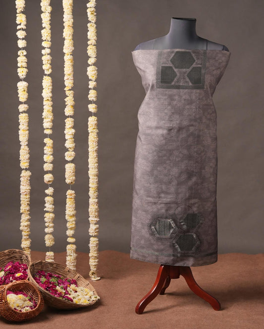 Steel Grey and Amber Orange Muga Cotton Unstitched Suit Set