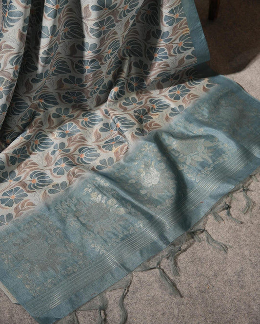 Steel Blue Jamdani Semi Tussar Unstitched Suit Set