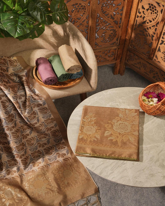 Cedar Brown Jamdani Muga Cotton Unstitched Suit Set