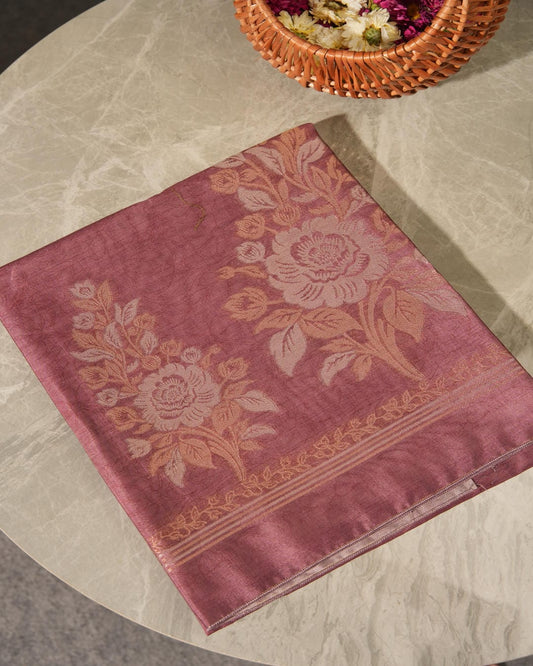Dusty Rose Jamdani Semi Tussar Unstitched Suit Set | Woven Floral Design