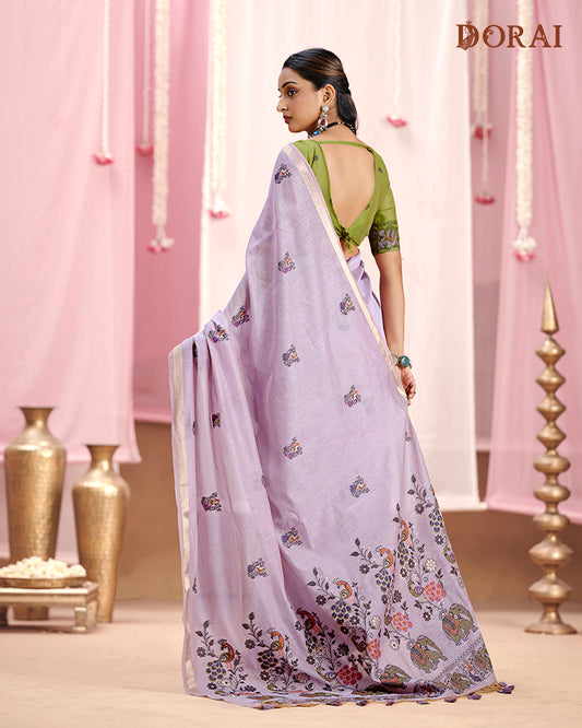 Lavender Jamdani Muga Cotton Saree – Woven Floral Motifs