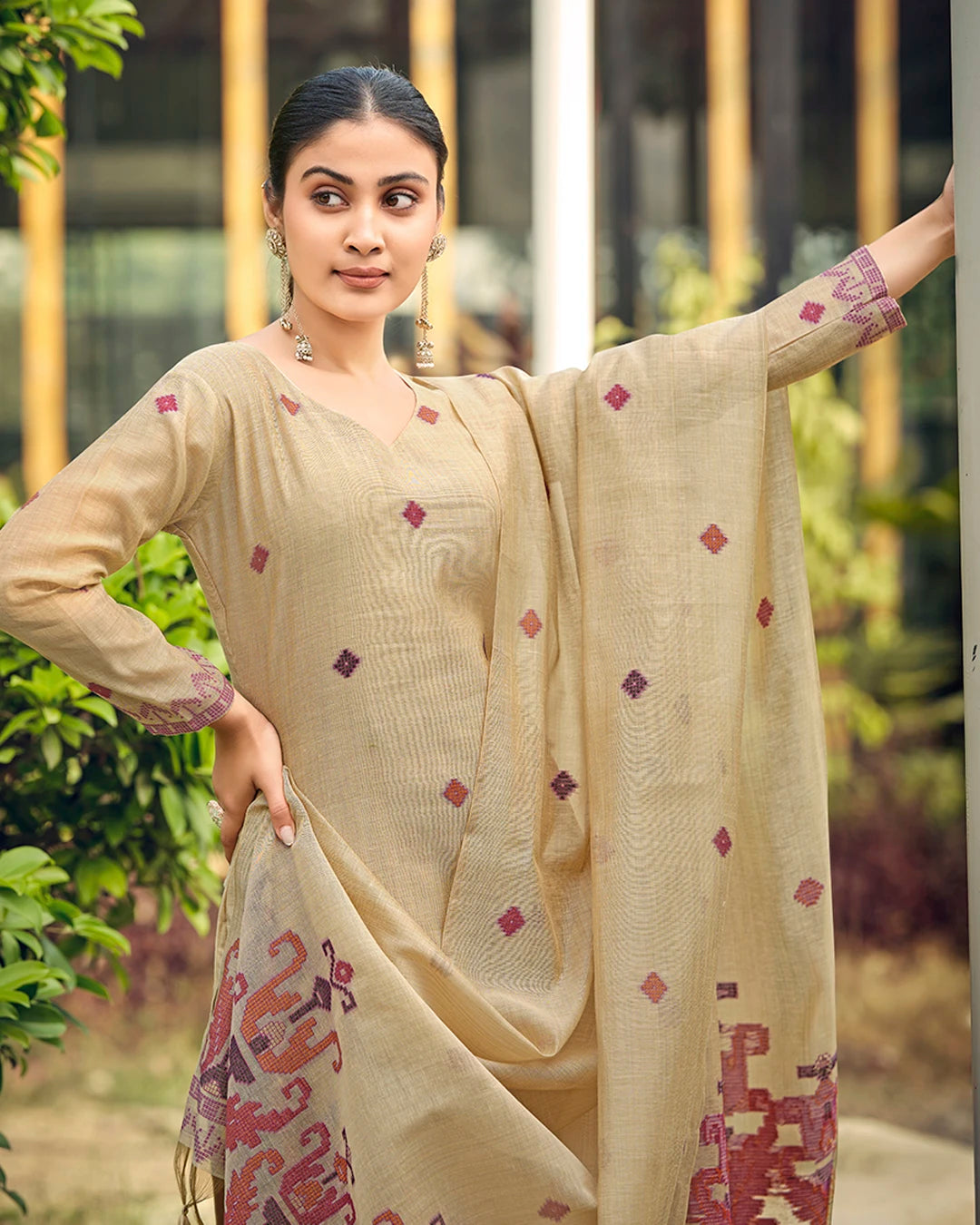 Heritage Weave – Chiku Muga Cotton Suit with Artisan Motif