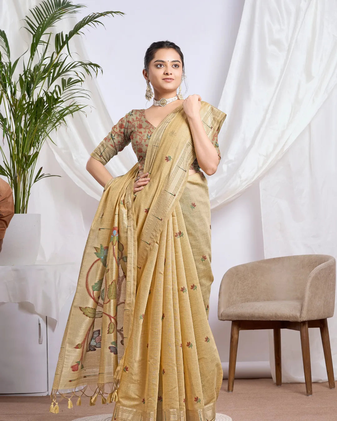 Saree Fabric: Muga Cotton (Breathable and Durable)