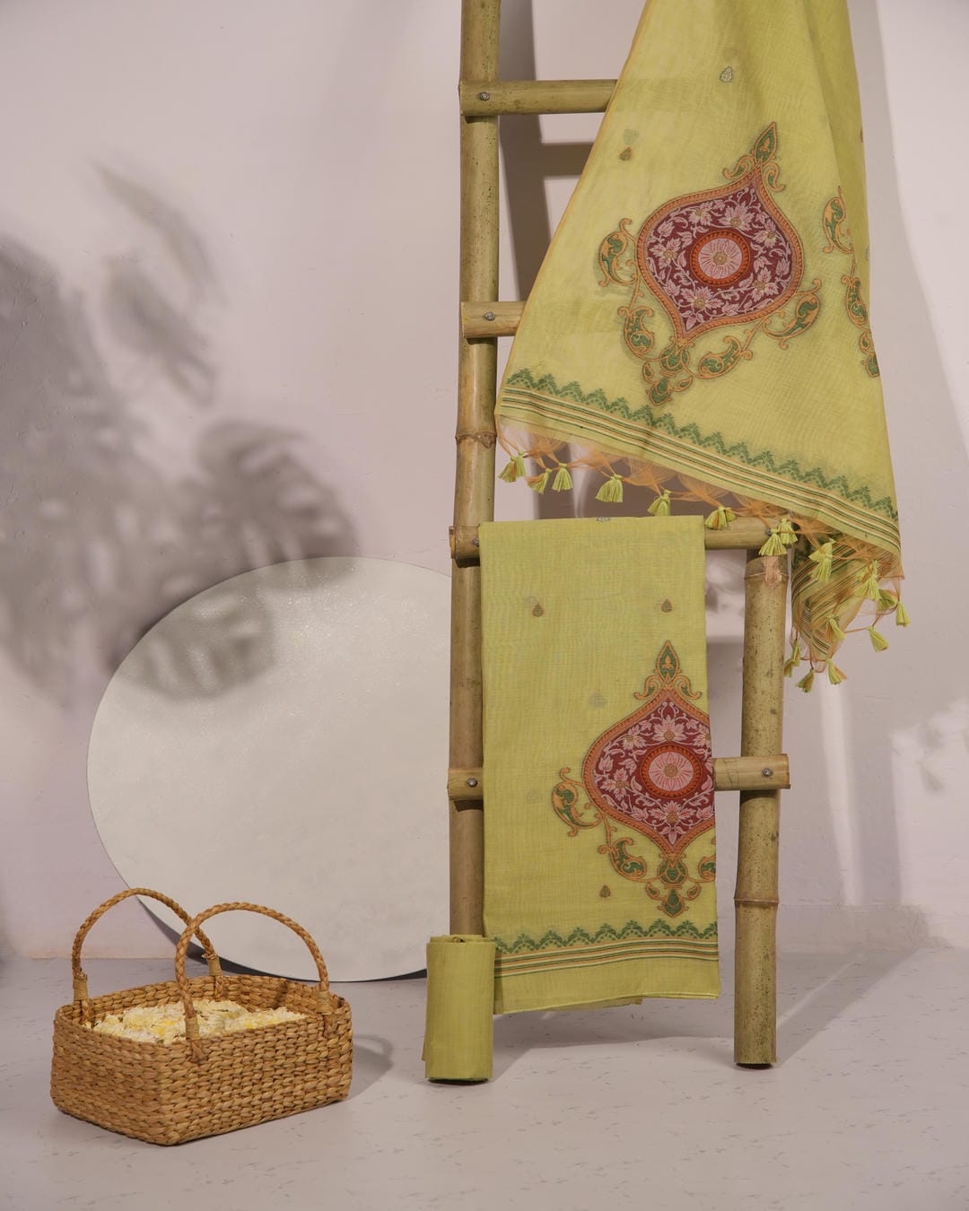 Top Fabric: Premium Muga Cotton with Lotus Medallion Motifs