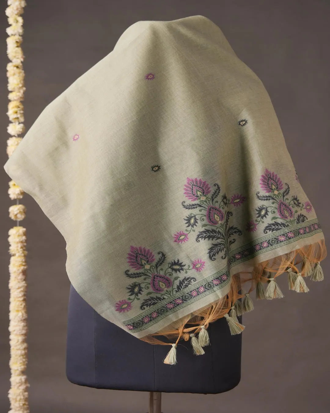 Dupatta Fabric Muga Cotton with Floral Motif Print